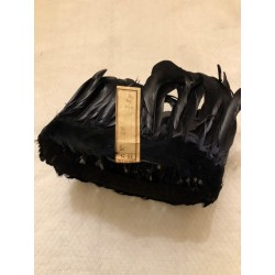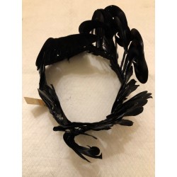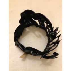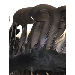 Tour de chapeau en plumes anciennes de couleur noire irisées bleues . Etiquette d'origine.