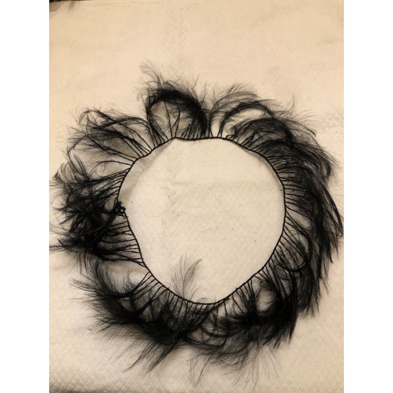 Tour de chapeau en Plumes anciennes d'aigrette de couleur noire , montées sur tige en fer .